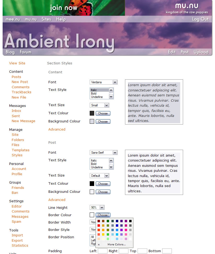 After some discussion last week, I held off on deploying the theme builder (that is, the style/layout/banner wizard) until I'd implemented the full initial set of features. That's finally nearly done: